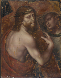 Image LAM (Layer Amplification Method) issue d’une technique d’imagerie multispectrale développée par Pascal Cotte (Lumiere Technology), qui amplifie numériquement des informations très faibles contenues dans les différentes couches de la peinture. Elle permet de révéler des détails invisibles à l’œil nu (dessin préparatoire, repentirs, structures internes) sans contact avec l’œuvre.
